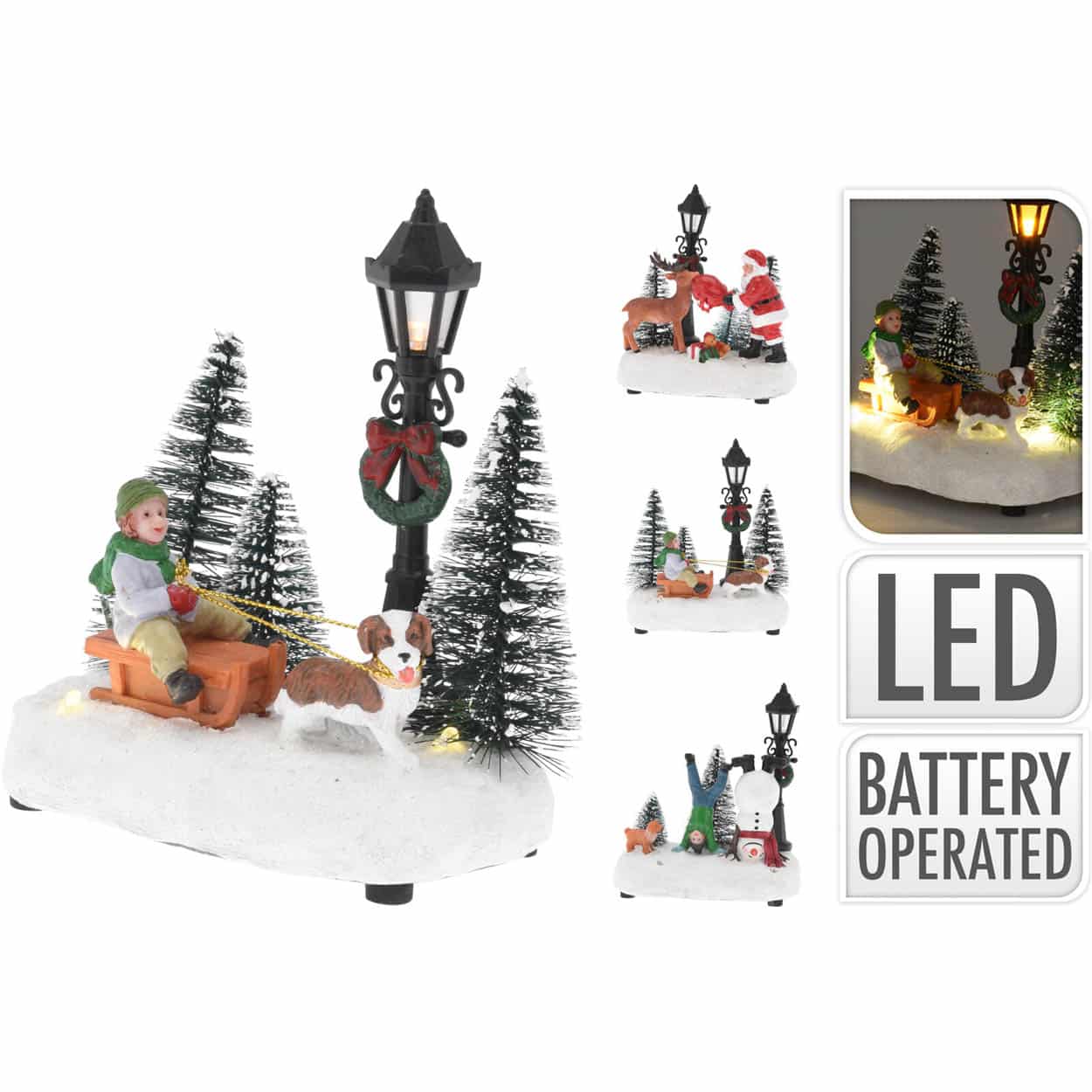 Τρεις χριστουγεννιάτικες παραστάσεις, με παιδάκι που κάνει έλκηθρο, Αγ, Βασίλη και τάρανδο και παιδάκι που παίζει με χιονάνθρωπο, Με φωτισμό LED,