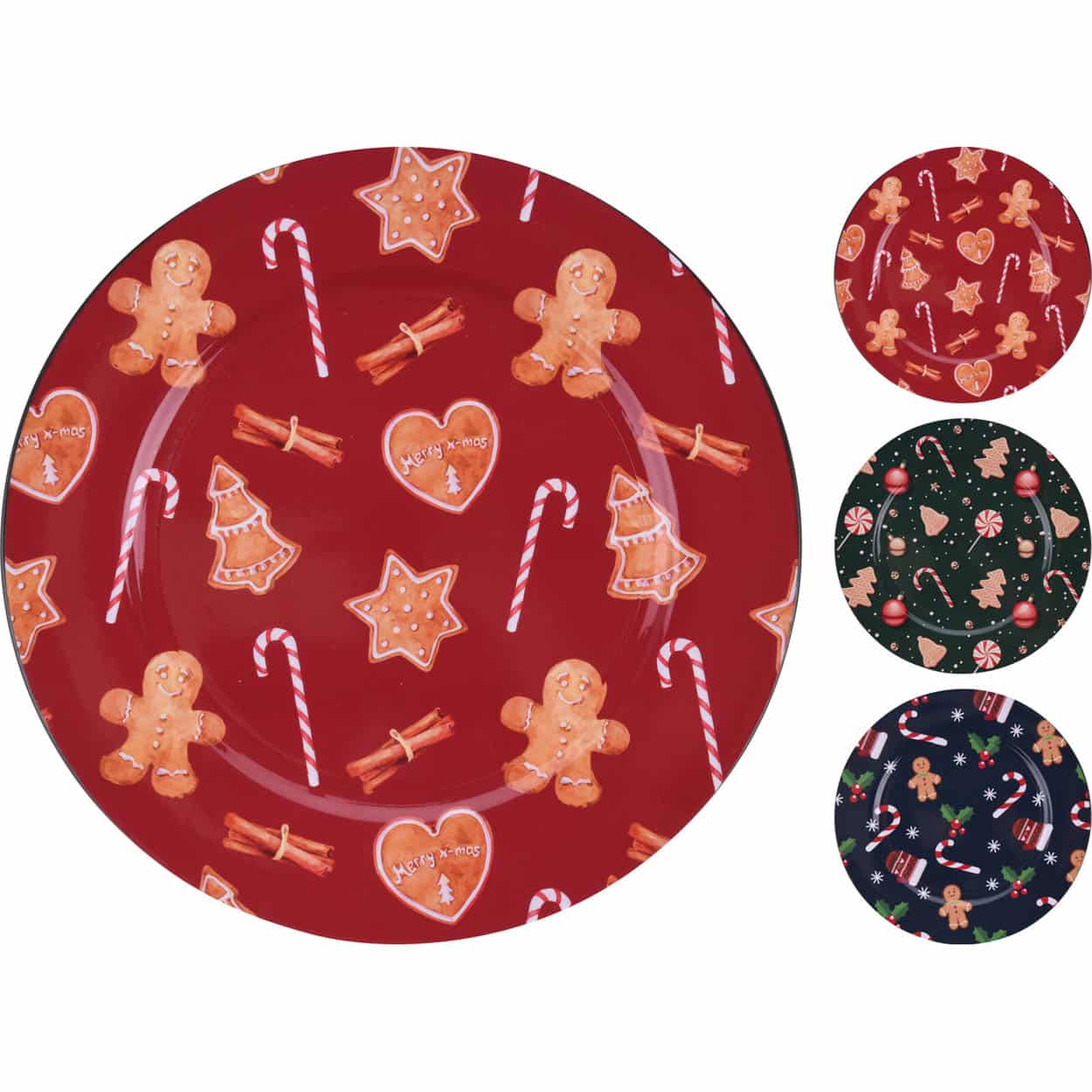 Πλαστική πιατέλα με χριστουγεννιάτικα σχέδια, σε τρία χρώματα, κόκκινο, πράσινο και μπλε,