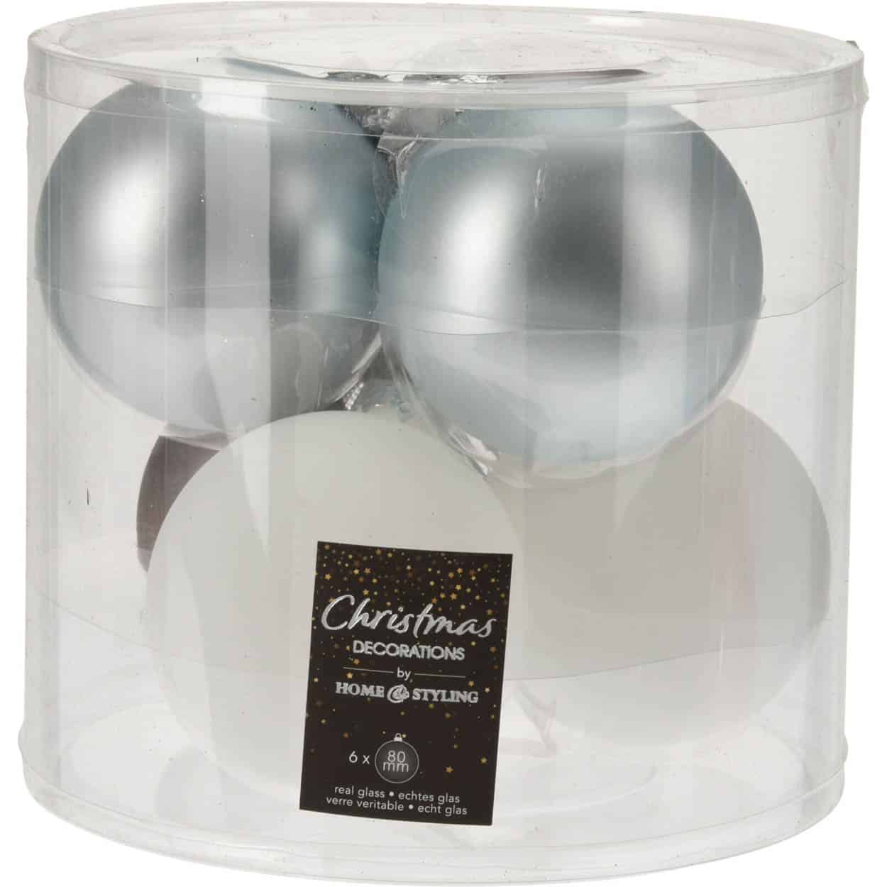 Γυάλινες χριστουγεννιάτικες μπάλες, σε τρία χρώματα, ασημί, λευκό και μαύρο, Συσκευασία των έξι, Φ8εκ,