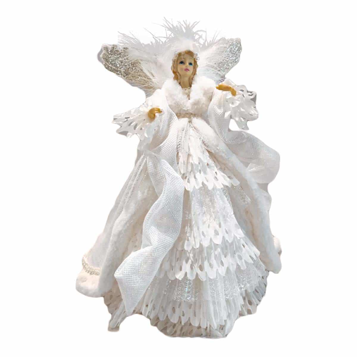 Παραμυθένιος κεραμικός άγγελος, με εντυπωσιακό φόρεμα, σε λευκό χρώμα