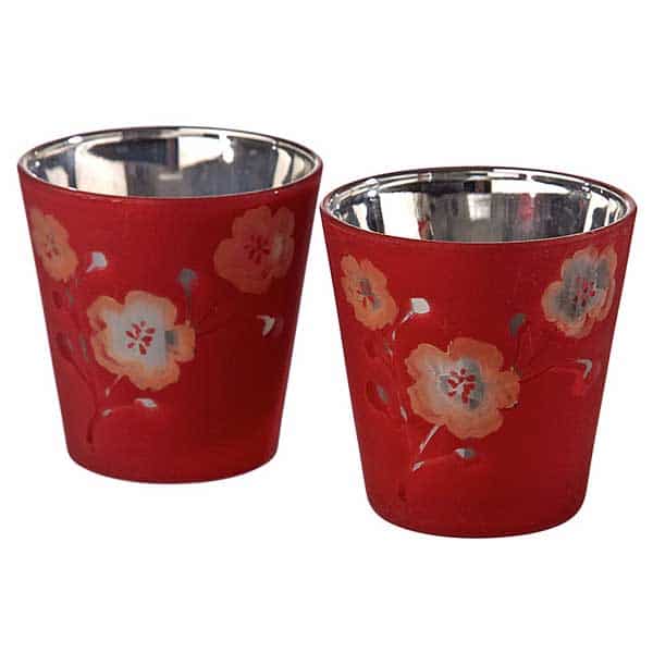 Κηροπήγιο, σε κόκκινο χρώμα, διακοσμημένο με λουλούδια, σε ΣΕΤ των 2