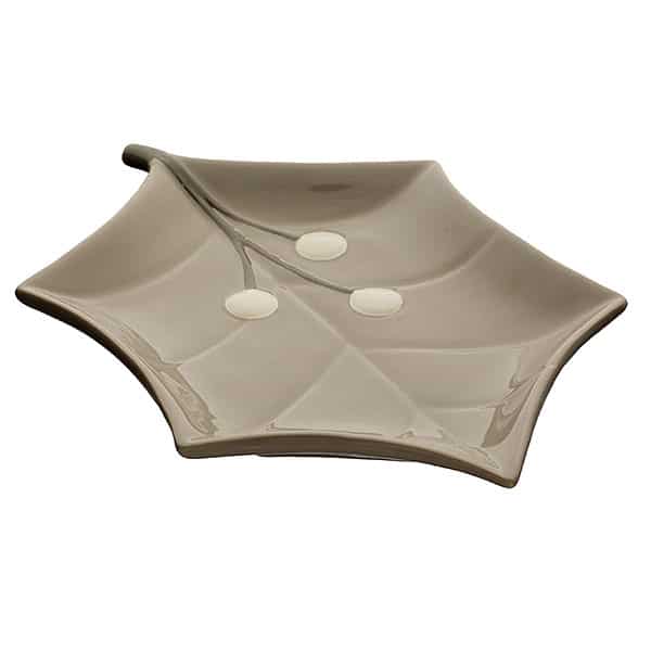 Κεραμικό πιάτο σε σχήμα φύλλου για να σερβίρετε χριστουγεννιάτικες λιχουδιές, Σε χρώμα εκρού-γκρι,