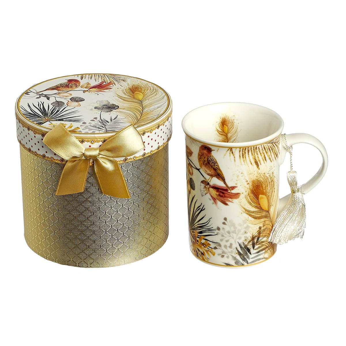 Κούπα πορσελάνη σε κουτί με πουλάκι χρυσή