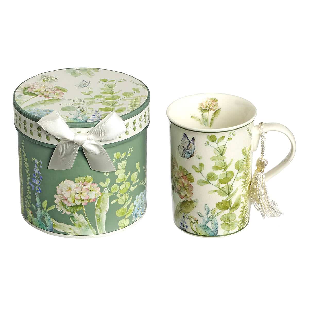 Κούπα πορσελάνη σε κουτί με λουλούδια πράσινη