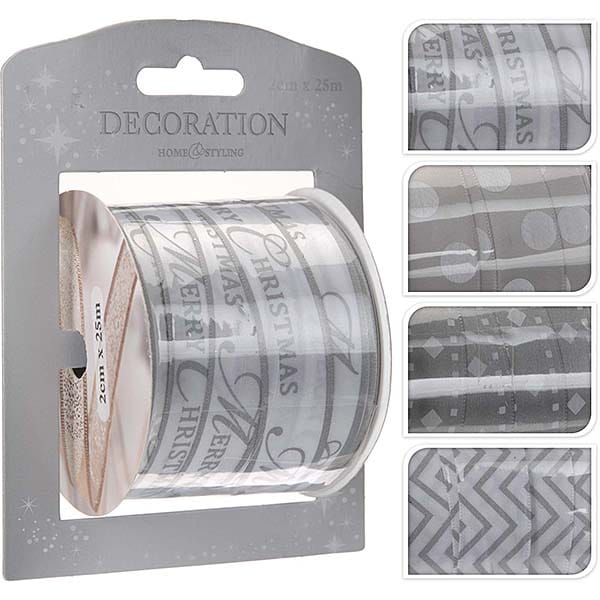 Κορδέλα ασημί 4 σχέδια 0,2cmΧ25m