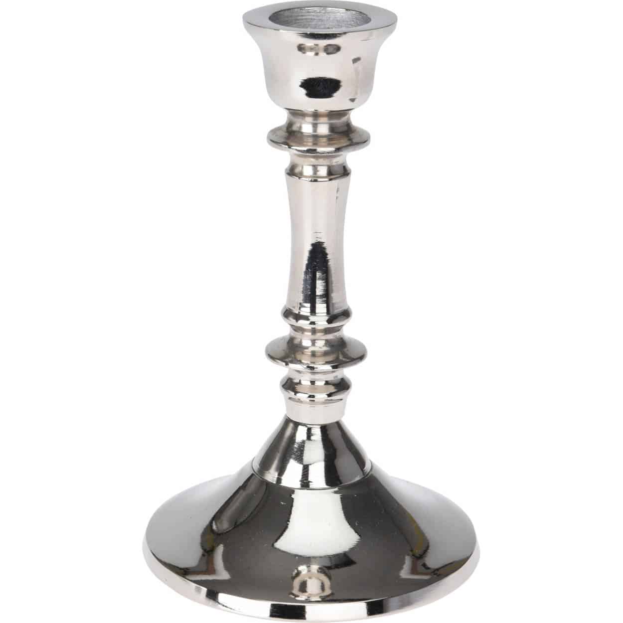Αλουμινένιο κηροπήγιο, μονό, σε ασημί χρώμα και κλασικό σχήμα, Ύψος: 13εκ,