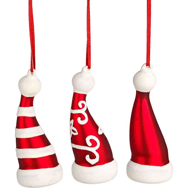 Τρία πανέμορφα σχέδια από γυαλί του κλασικού καπέλου του Άγιου Βασίλη για να κρεμάσετε στο χριστουγεννιάτικο δεντράκι σας!