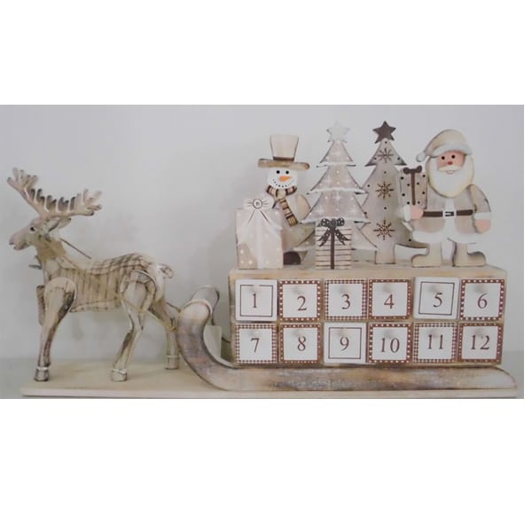 Χριστουγεννιάτικο διακοσμητικό ξύλινο ελαφακι, με έλκηθρο και ημερολόγιο