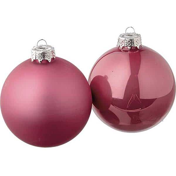 Γυάλινες χριστουγεννιάτικες μπάλες, σε ροζ χρώμα, ματ και γυαλιστερό, Συσκευασία των δώδεκα, Φ6εκ,