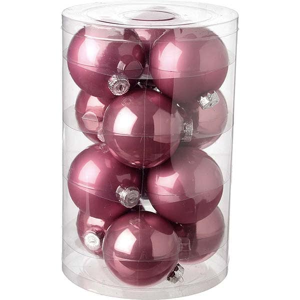 Γυάλινες χριστουγεννιάτικες μπάλες, σε ροζ γυαλιστερό χρώμα, Συσκευασία των δώδεκα, Φ8εκ,