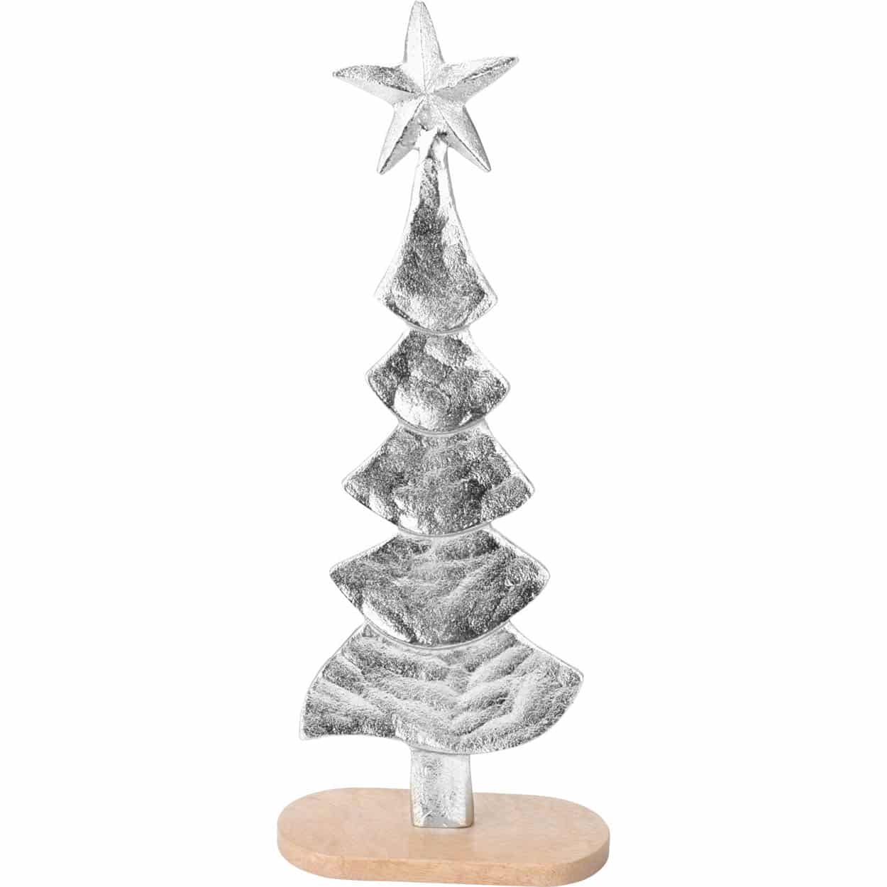 Χριστουγεννιάτικο διακοσμητικό δέντρο σε ξύλινη βάση, από αλουμίνιο, σε ασημί χρώμα