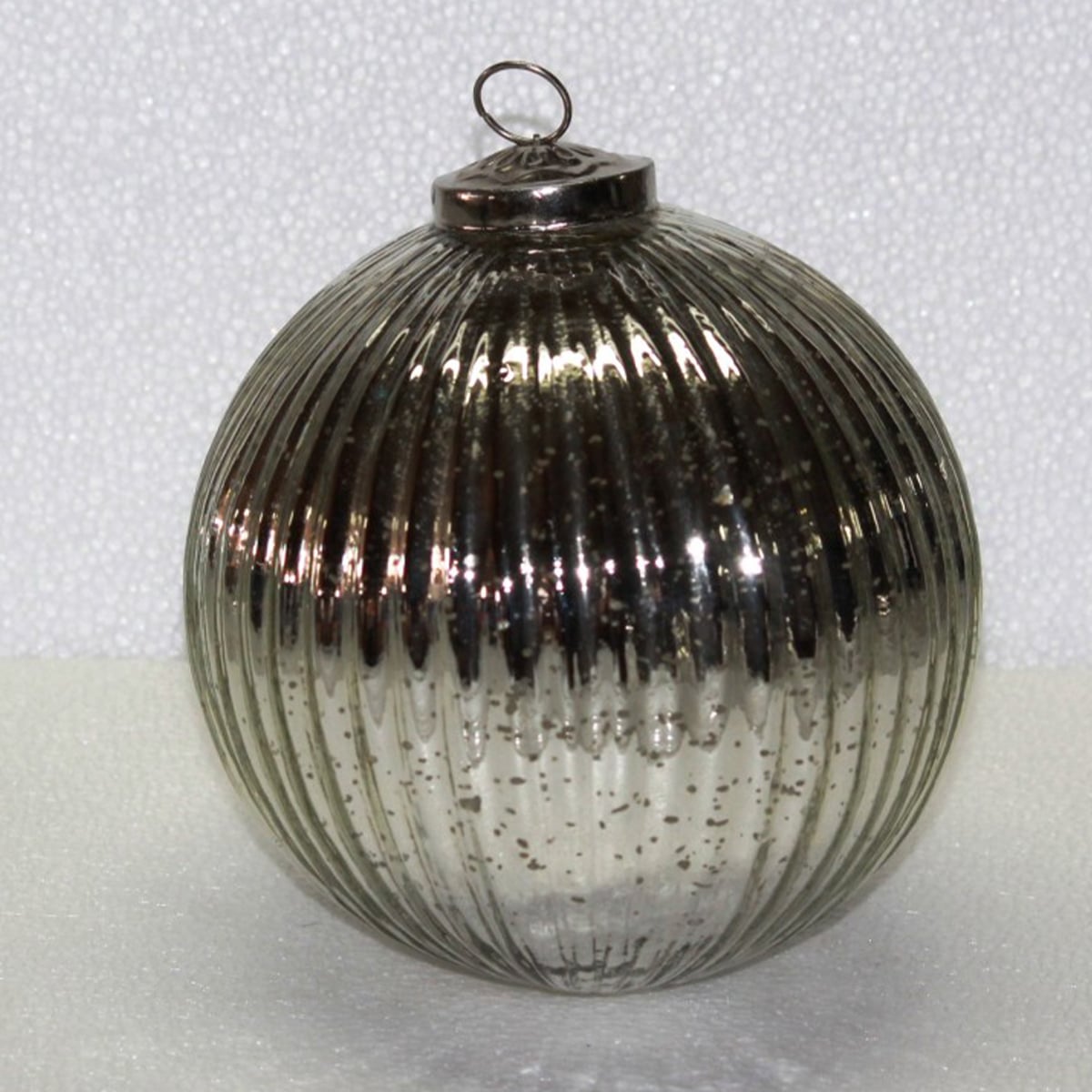 Γυάλινη μπάλα χριστουγεννιάτικη με ανάγλυφες αυλακώσεις, ασημί χρώματος, Φ15εκ,
