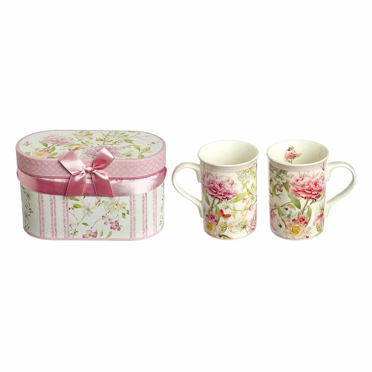 Κούπα πορσελάνη σε κουτί με λουλούδια ροζ, S/2