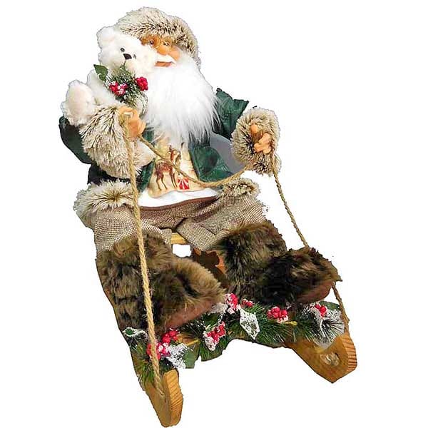 Διακοσμητικός Άγιος Βασίλης με αρκουδάκι πάνω σε έλκηθρο,