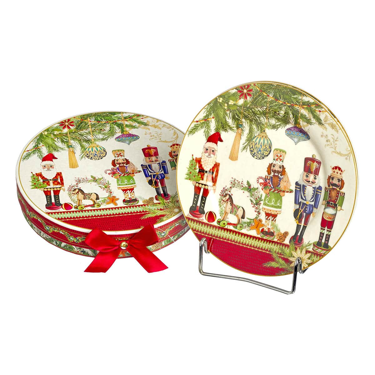 Πιατάκι από πορσελάνη για το χριστουγεννιάτικο κέικ, με σχέδιο Άγιο Βασίλη και καρυοθραύστες, Σε σετ των δύο,