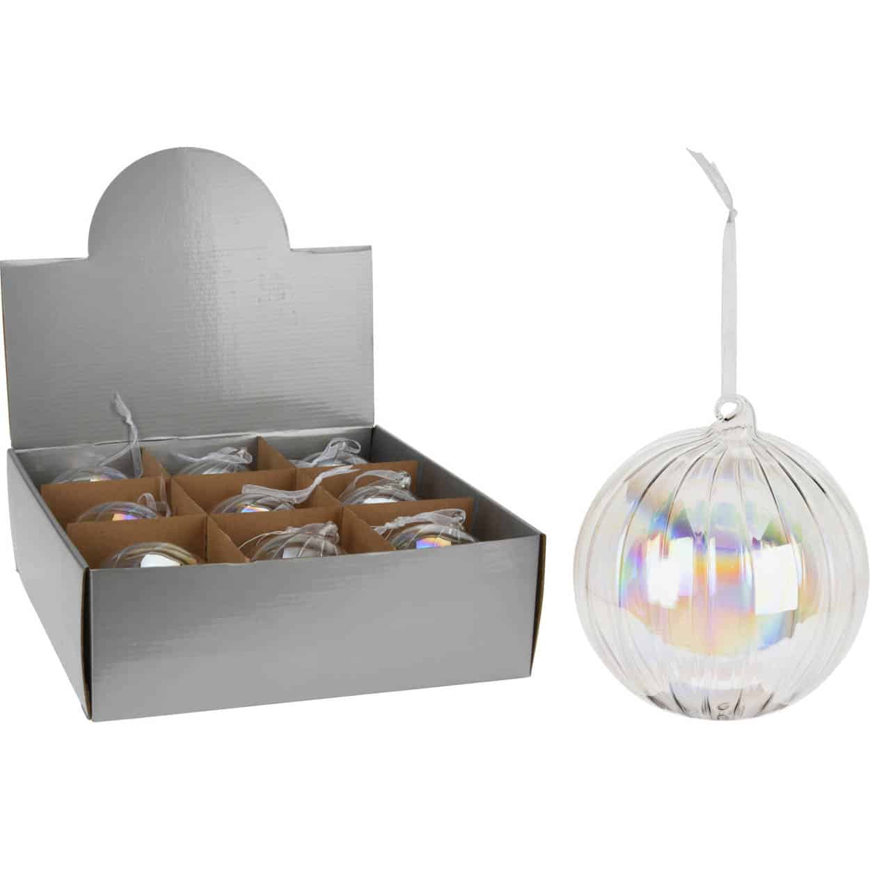 Γυάλινη χριστουγεννιάτικη μπάλα, διάφανη, περλέ χρώματος, Συσκευασία των εννιά, Φ10εκ,