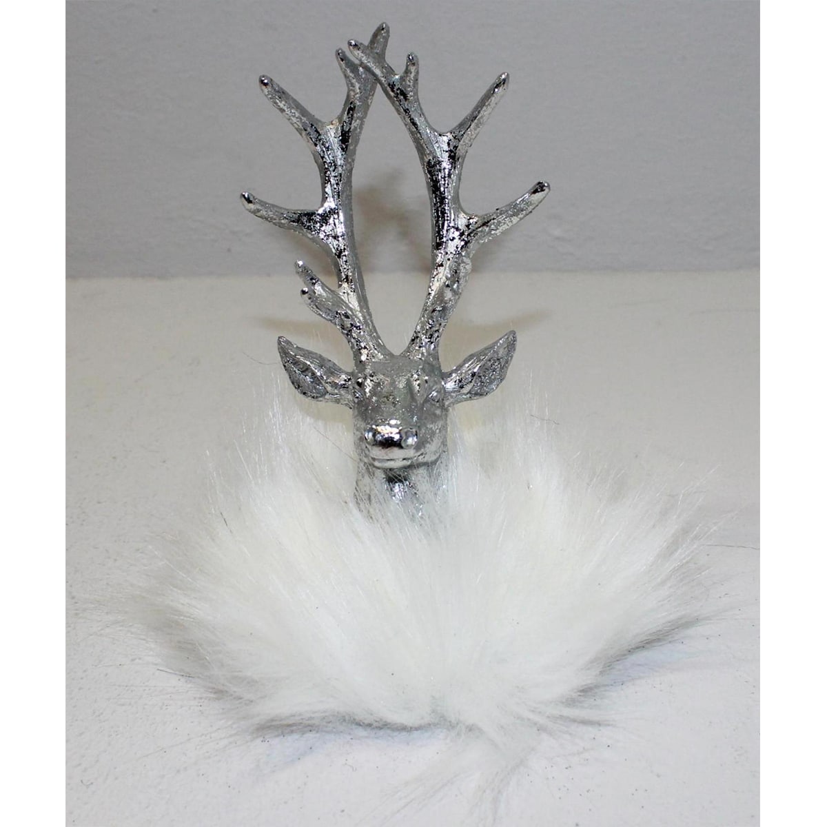 Διακοσμητικό ελάφι, από ρητίνη, με γουνάκι, σε ασημί χρώμα