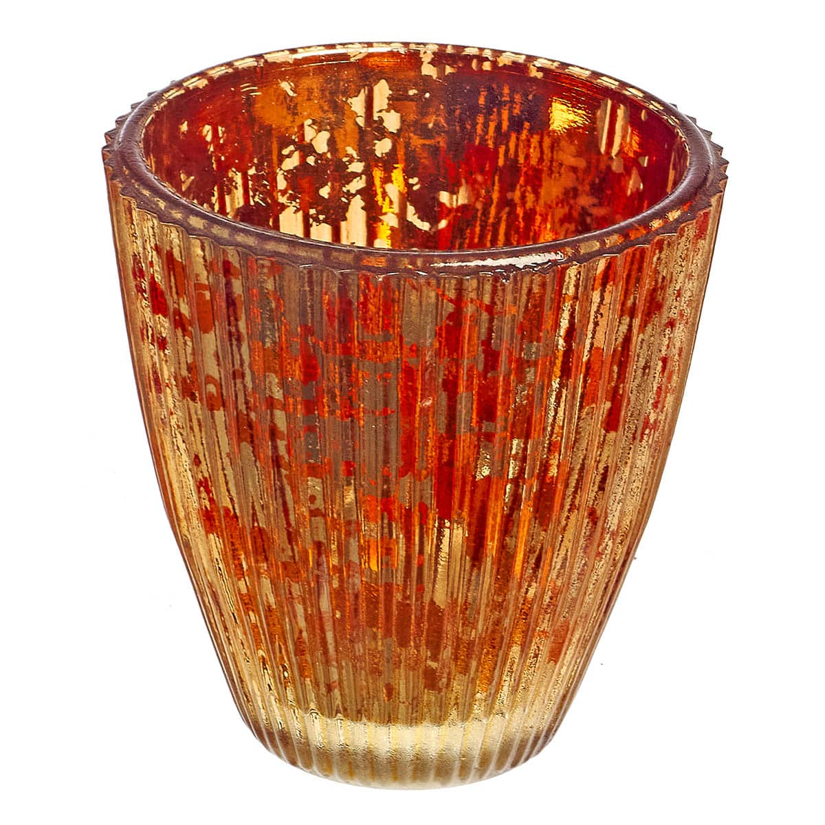 Κηροπήγιο γυάλινο για ρεσώ πορτοκαλί & χρυσό
