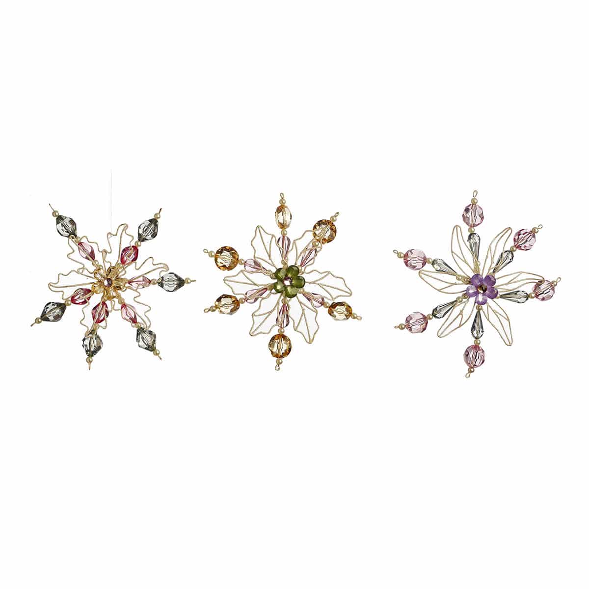 Στολίδια χιονονιφάδα μεταλλικά με χάντρες S/3