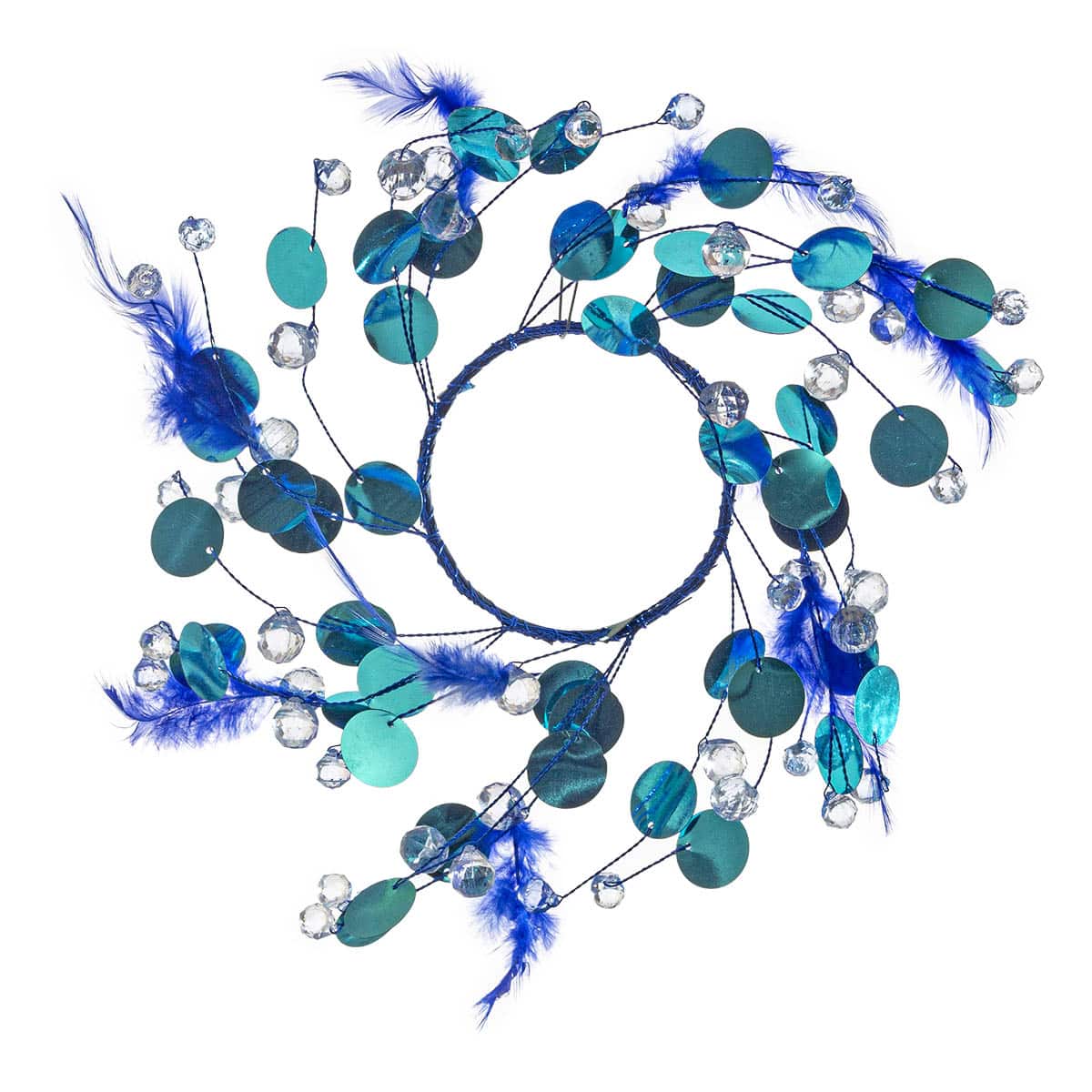 Στεφανάκι με πούπουλα και πούλιες τιρκουάζ