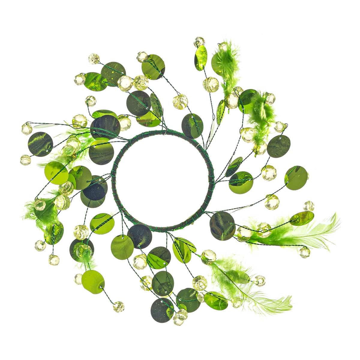 Στεφανάκι με πούπουλα και πούλιες πράσινο