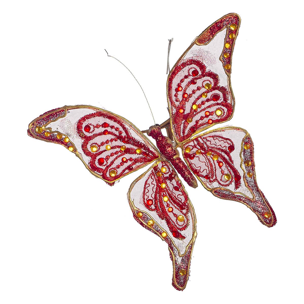 Διακοσμητική πεταλούδα σε κόκκινο-ασημένιο με μανταλάκι