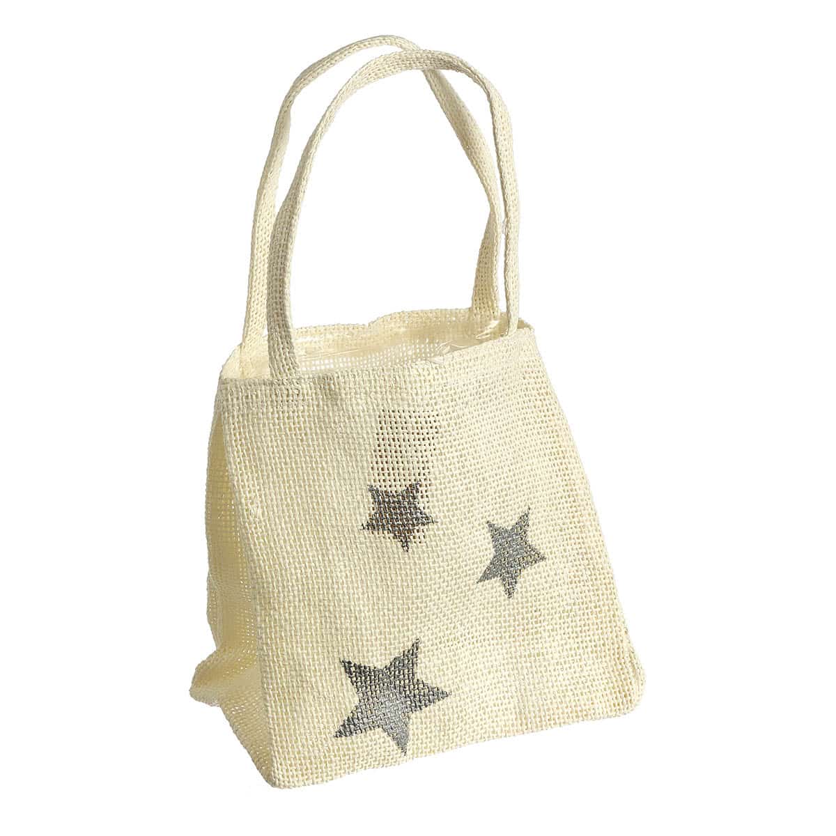 Τσαντάκι κανβάς μπεζ με αστέρια ασημένια