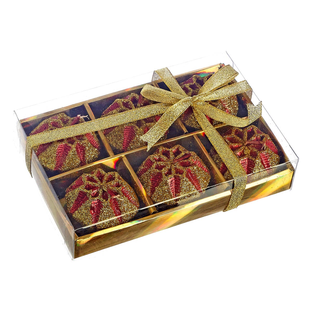 Κερί διακοσμητικό κόκκινο & χρυσό S/6 σε κασετίνα