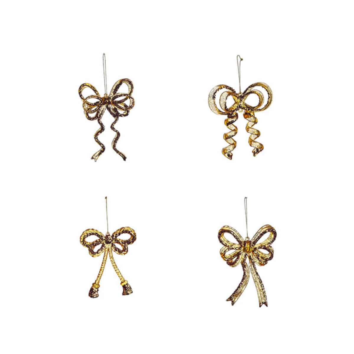 Στολίδια κρεμαστοί φιόγκοι χρυσό & γκλίτερ S/4