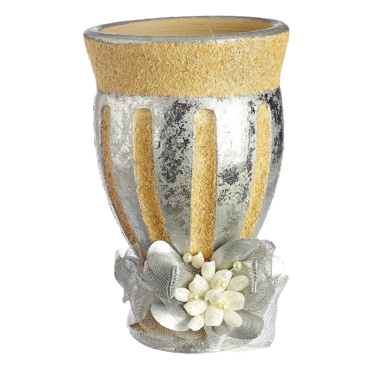 Βάζο κεραμικό με ριγέ ασημί & μπεζ
