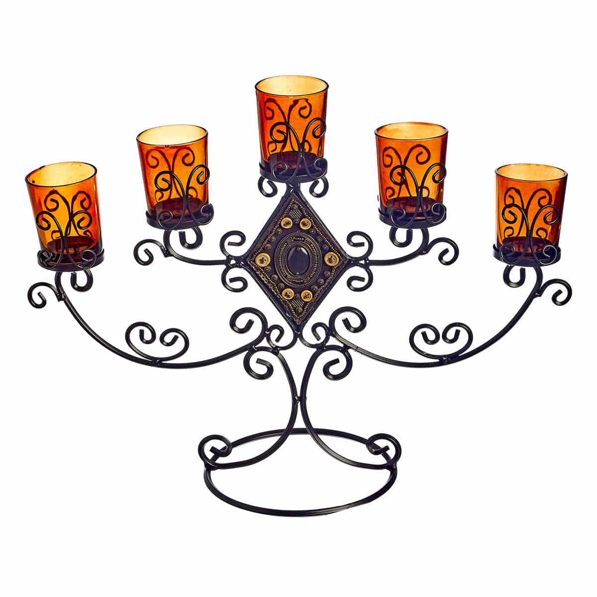 Βάση μεταλλική με κηροπήγια γυάλινα για ρεσώ σε πορτοκαλί
