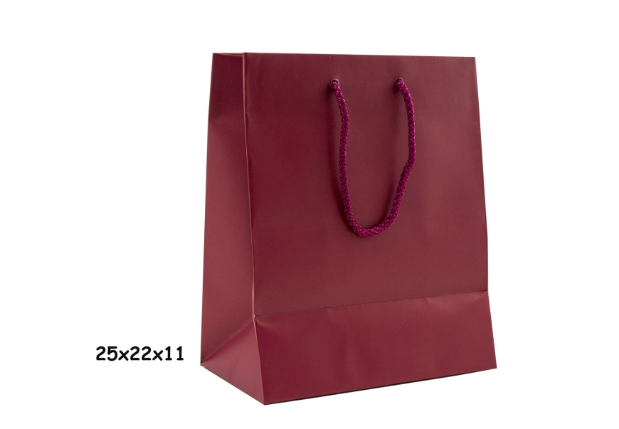 Ποιοτικές χειροποίητες χάρτινες τσάντες με κορδόνι, σε κομψό μπορντό χρώμα, ιδανικές για καταστήματα δώρων, είδη ρουχισμού και επαγγελματίες που δίνουν έμφαση στη λεπτομέρεια. Συνδυάζουν λειτουργικότητα και αισθητική, προσφέροντας μοναδική εμπειρία στον πελάτη. Ανθεκτική κατασκευή, ιδανική για κομψή και ασφαλή συσκευασία προϊόντων. Διατίθονται σε Συσκευασία 20 τεμαχίων.