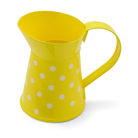 Η διακοσμητική μεταλλική κίτρινη κανάτα πουά είναι μια γιορτή για τις αισθήσεις. Το ζωηρό κίτρινο χρώμα της φωτίζει κάθε γωνιά, ενώ τα ανάλαφρα πουά προσθέτουν μια παιχνιδιάρικη και χαρούμενη νότα. Είτε τη χρησιμοποιείτε για γάμους, βαπτίσεις, είτε για να διακοσμήσετε τον προσωπικό σας χώρο, αυτή η κανάτα γίνεται ο απόλυτος σύμμαχος στις πιο σημαντικές στιγμές σας.