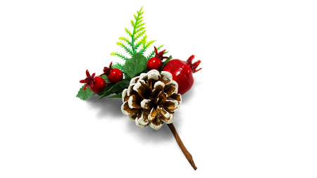 Κλαδάκι υφασμάτινο με φυσικό κουκουνάρι και διακοσμητικά ρόδια.
