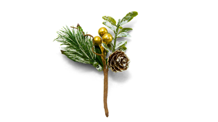 Κλαδάκι υφασμάτινο με φυσικό κουκουνάρι και διακοσμητικές χρυσές μπαλίτσες.