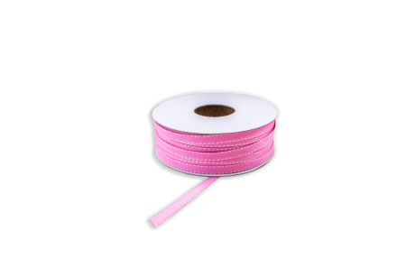 Κορδέλα διπλής όψεως με γαζί σε ροζ απόχρωση.