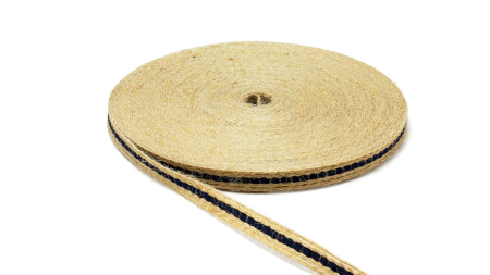 Κορδέλα γιούτα σε φυσική απόχρωση με μπλε ρίγα.