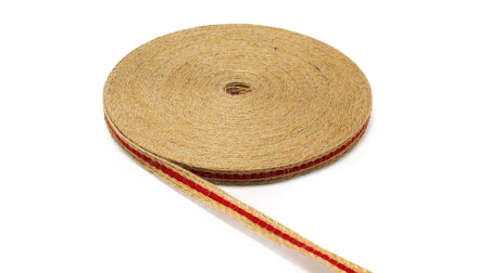 Κορδέλα γιούτα σε φυσική απόχρωση με κόκκινη ρίγα.