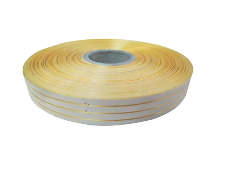 Κορδέλα χάρτινη με χρυσές ρίγες σε μπεζ απόχρωση.