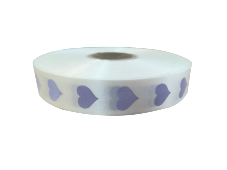 Κορδέλα χάρτινη με σιέλ καρδιές σε λευκή απόχρωση.