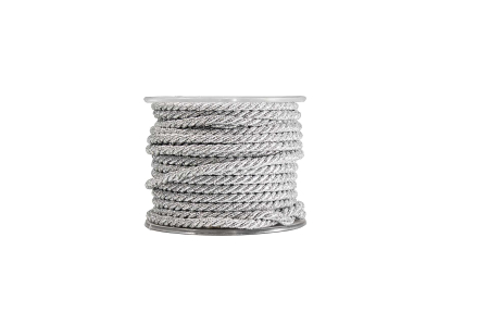 Κορδόνι δίκλωνο στριφτό βαμβακερό σε ασημένια απόχρωση.
