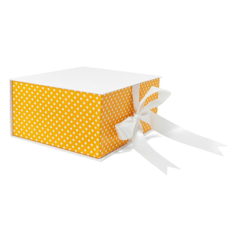 Χειροποίητο Kουτί-Βιβλίο, Λευκό-Πορτοκαλί Πουά με Σατέν Κορδέλα, 28x24x13cm