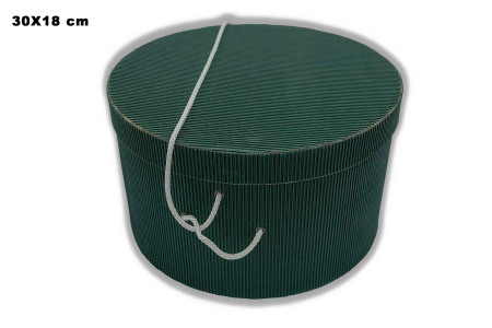 Κουτί χειροποίητο, στρογγυλό, καπελιέρα, φτιαγμένο από σκληρό χαρτόνι γκοφρέ σε σκούρα πράσινη απόχρωση.