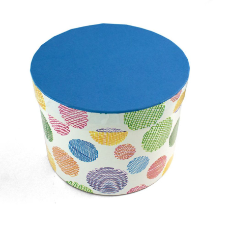 Χειροποίητο Χάρτινο Κουτί-Καπελιέρα, Πολύχρωμο Πουά με Μπλε Καπάκι, 2 διάστασεις