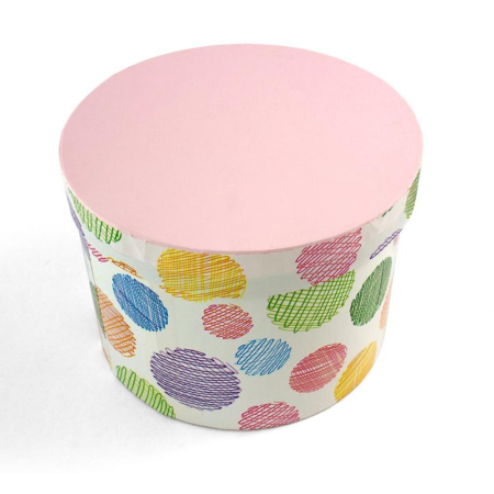Χειροποίητο Χάρτινο Κουτί-Καπελιέρα, Πολύχρωμο Πουά με Ροζ Καπάκι, 2 διάστασεις