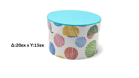 Κουτί χειροποίητο φτιαγμένο από σκληρό χαρτόνι, καπελιέρα, με εκτύπωση θέμα "πολύχρωμα κουβαράκια" με σιελ καπάκι.