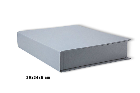 Κουτί χάρτινο χειροποίητο βιβλίο σε γκρι χρώμα με ανάγλυφο χαρτί απομίμηση υφάσματος.