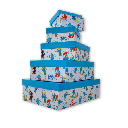Χειροποίητο Χάρτινο Κουτί, Στρουμφάκια με Γαλάζιο Καπάκι, 5 διαστάσεις