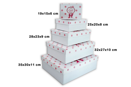 Κουτί φτιαγμένο από σκληρό χαρτόνι σε λευκή απόχρωση με ροζ πουά στο καπάκι και εκτύπωση "Girl"