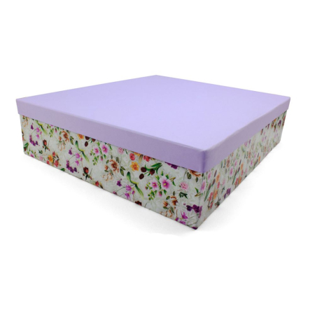 Χειροποίητο Χάρτινο Κουτί, Λουλούδια με Λιλά Καπάκι, 4 διαστάσεις